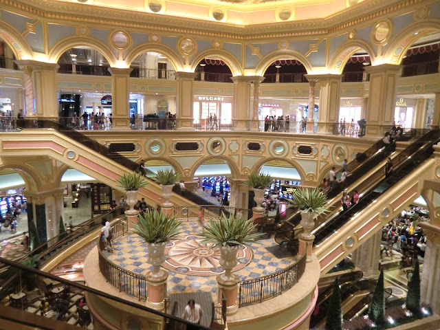 After a few days of absence, our Internet connection is back up and I can blog again! On Saturday we went to Macao to activate Cornelius's visa. As we were short on time we could only visit the famous casino Venezian. As the name implies, it is a replica of the venetian architecture with channels, gondolas, a Bellini Lounge and of course the "old" Venetian buildings. It sounds amazing and partially looks amazing as well but indeed it is just artificial. The gondoliers (Asians) sing venetian songs, the floor is made out of plastic, Mac Donalds and other shops appear to be miss placed in this setting, the lighting is factitious and the sky is only painted. In conclusion I was more deterred than amazed by this tourist attraction, or more precisely, by this non sustainable money factory. Oh, and of course the whole place was cooled down to about 18 degrees Celsius.